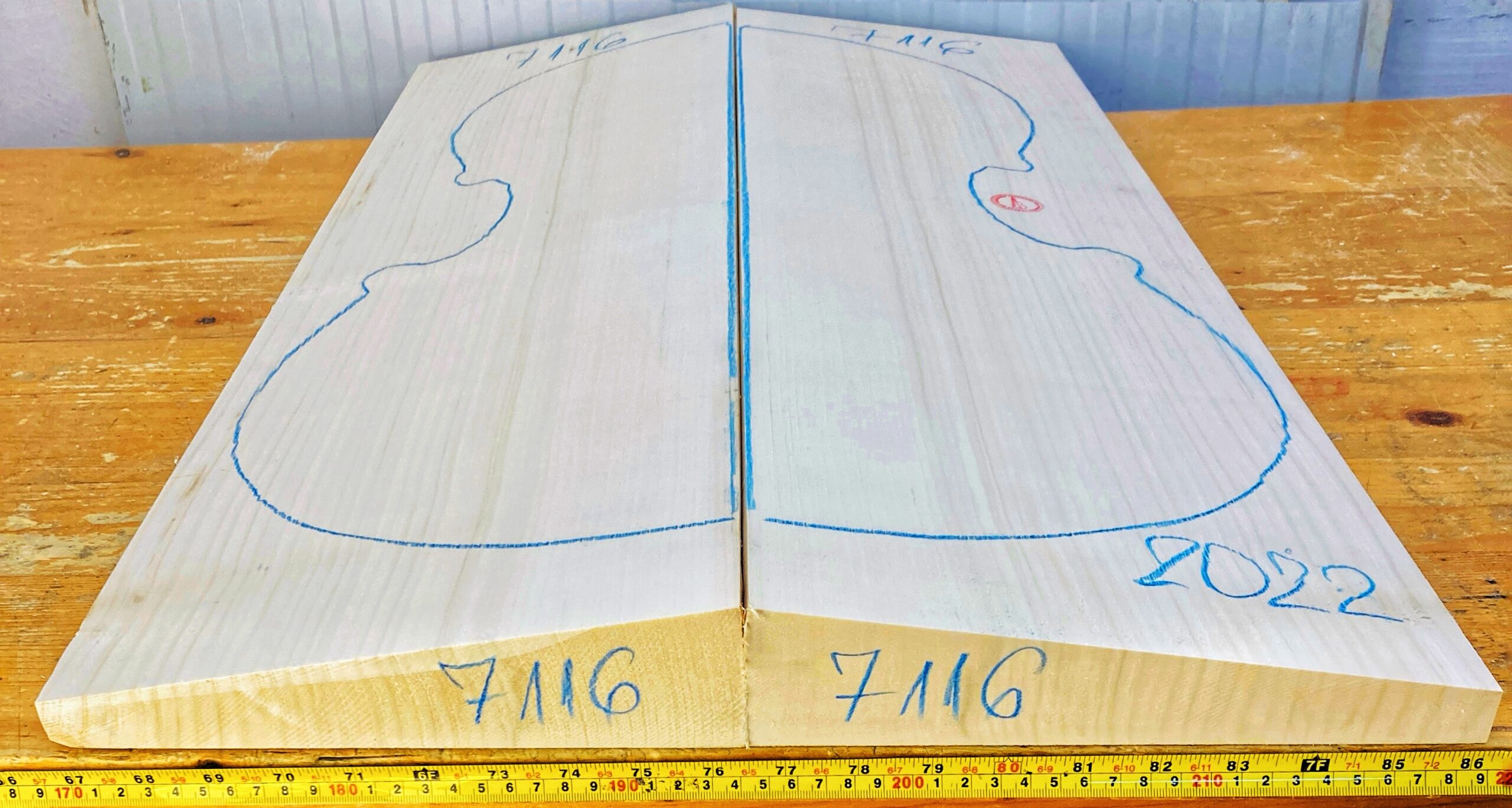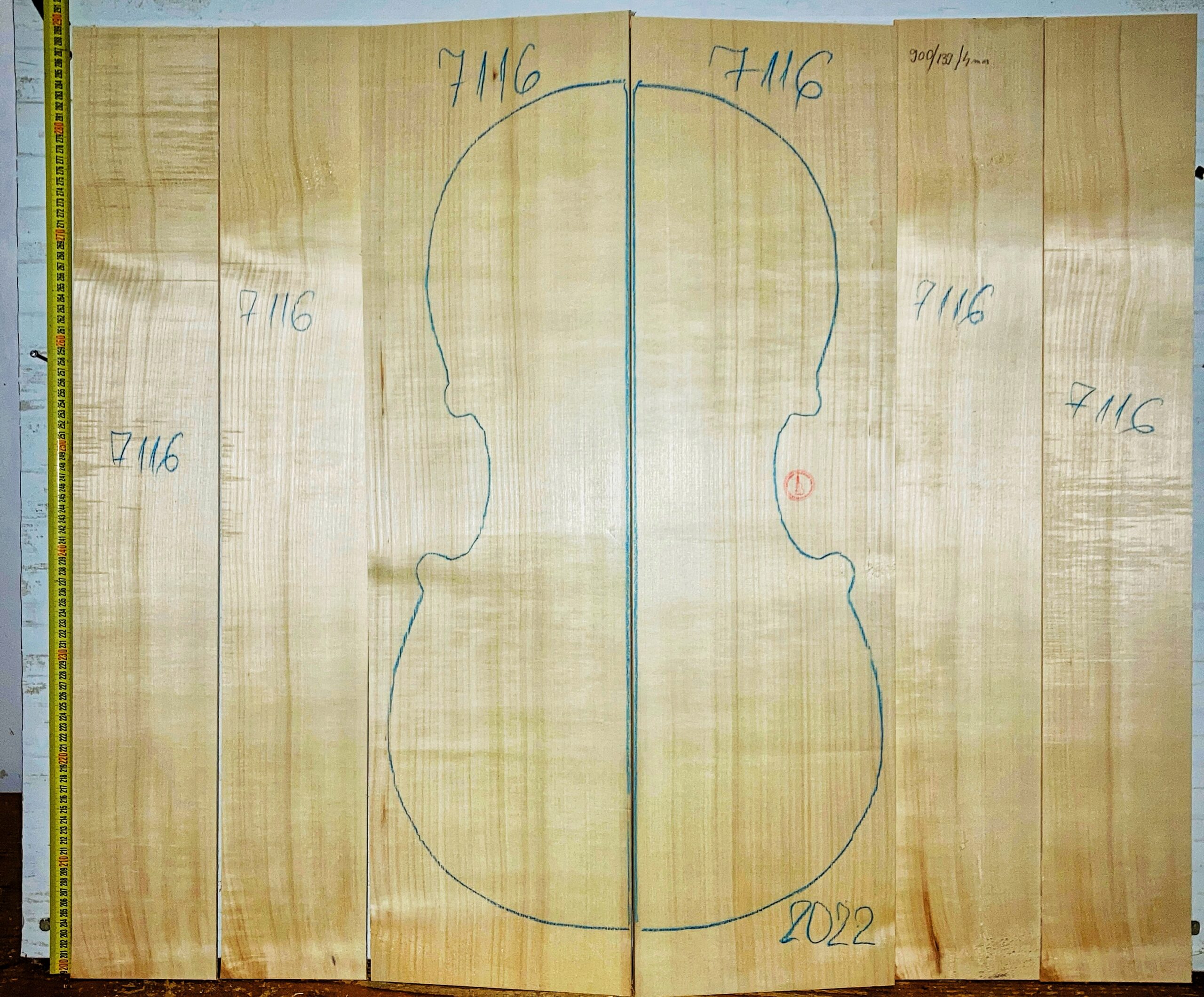 Pattern shown on the back plates is 230 mm wide at the lower bout