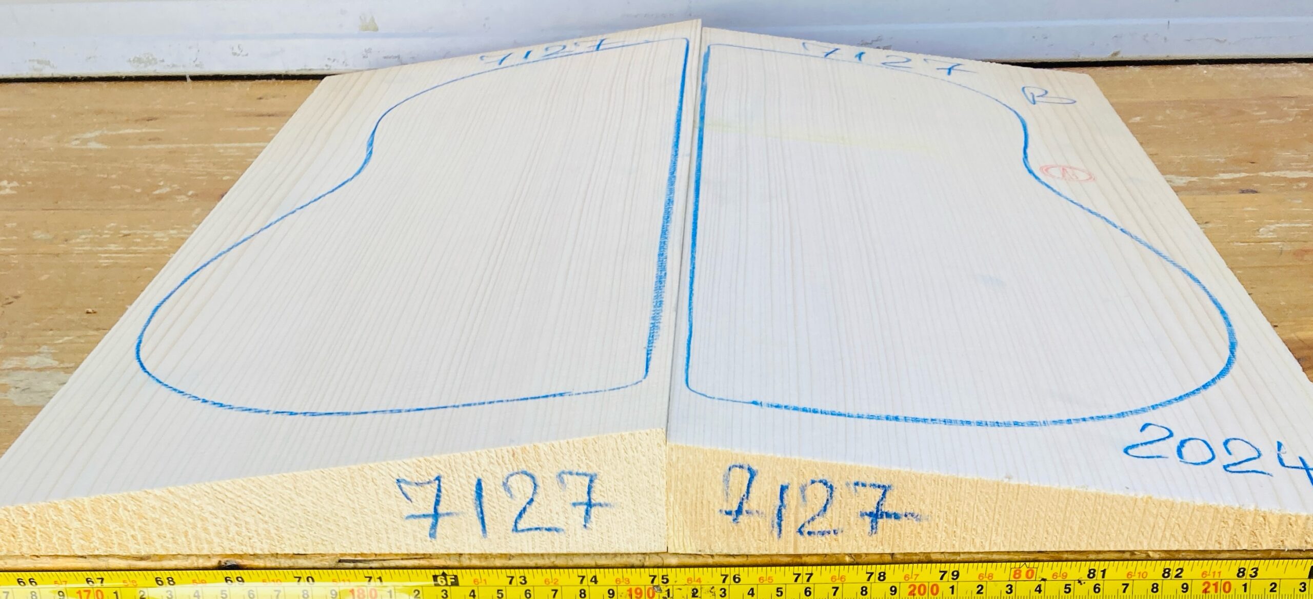 There is a set of two bookmatched, quartersawn halves. Each half is minimum 23″ x 9″ (600 mm x 230 mm) and tapers from approximately 0.43″ to 1.25″ at the joint edge (11 mm to 35 mm) thickness