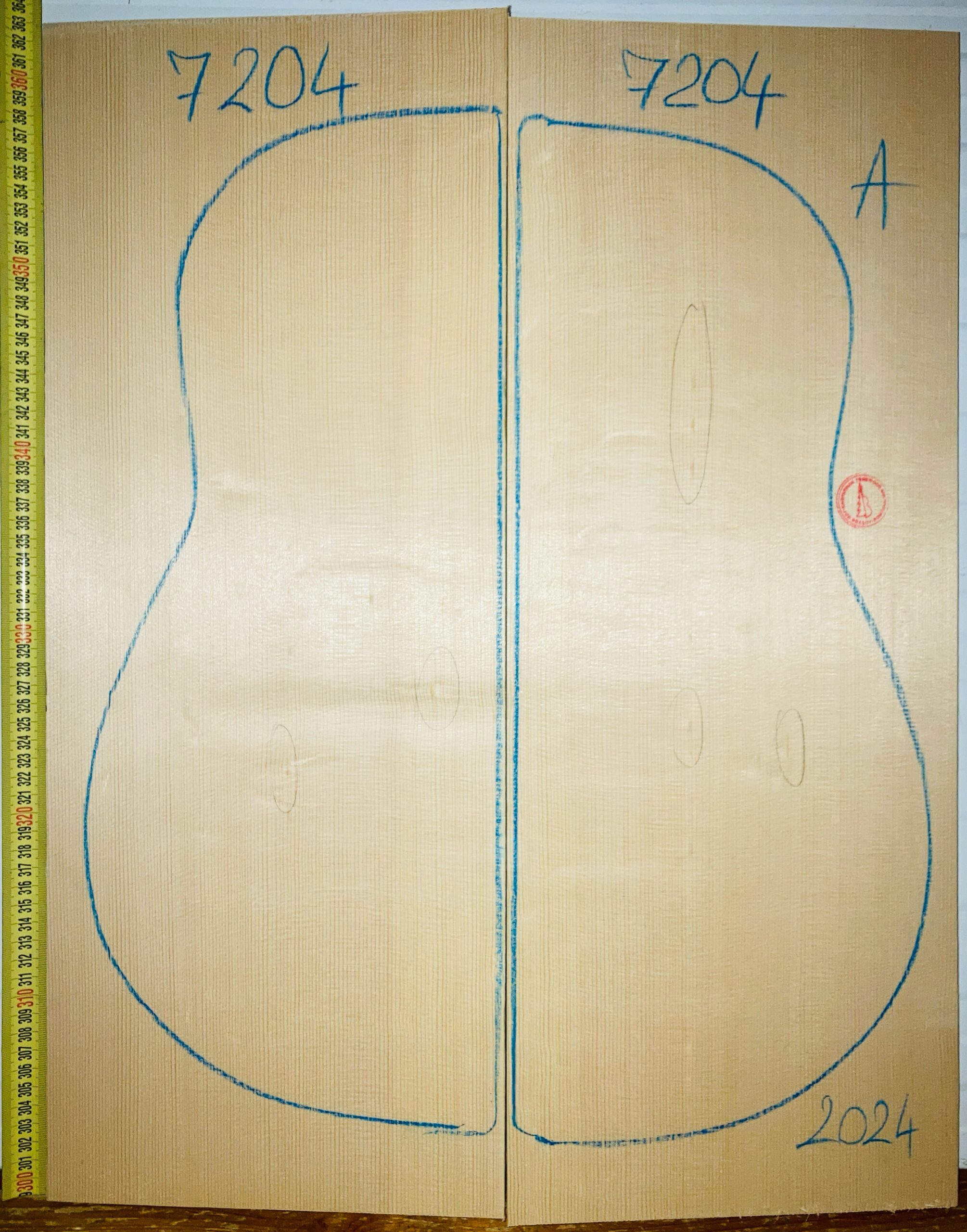 There is a set of two bookmatched, quartersawn halves. Each half is minimum 23″ x 9″ (600 mm x 230 mm) and tapers from approximately 0.43″ to 1.25″ at the joint edge (11 mm to 35 mm) thickness