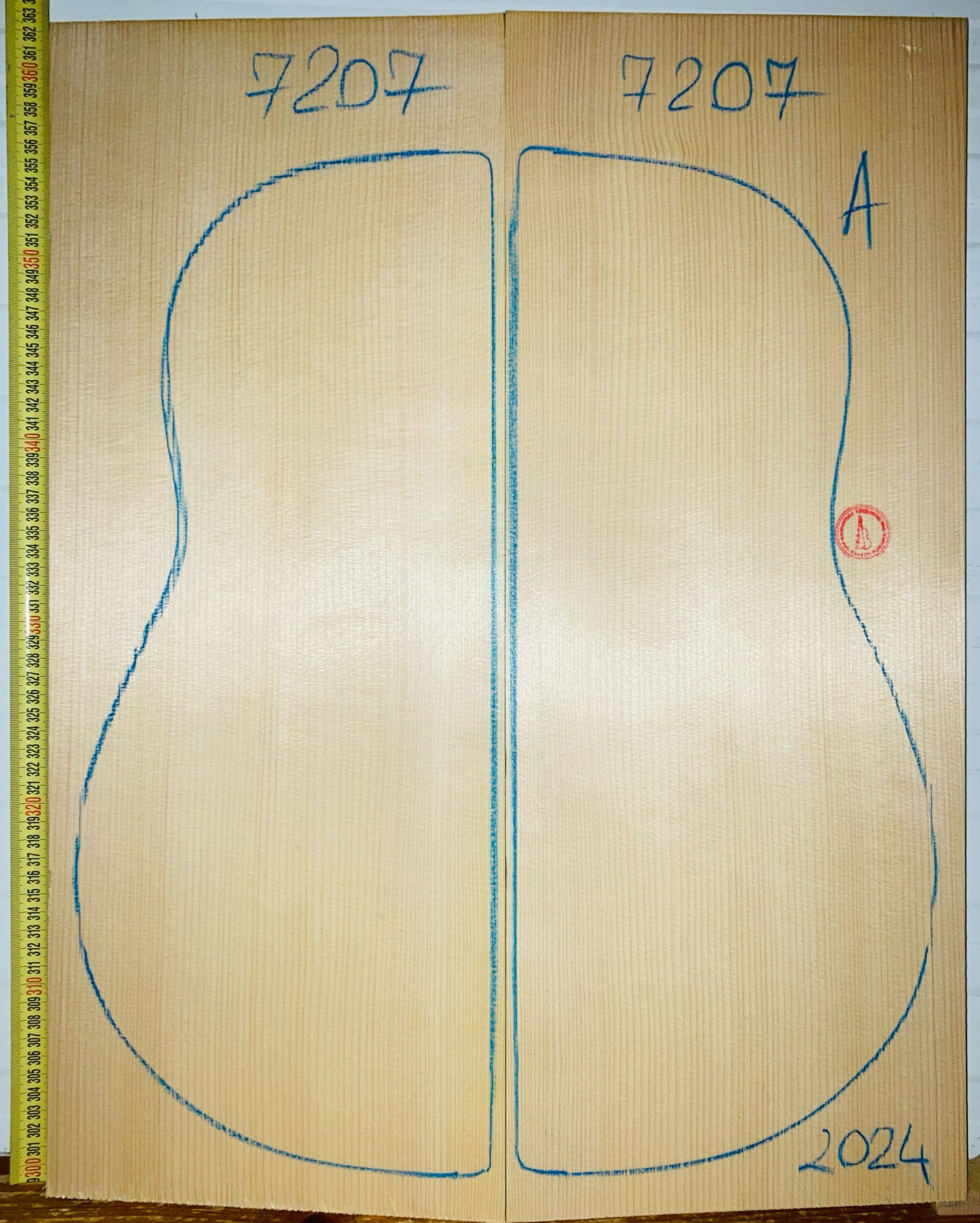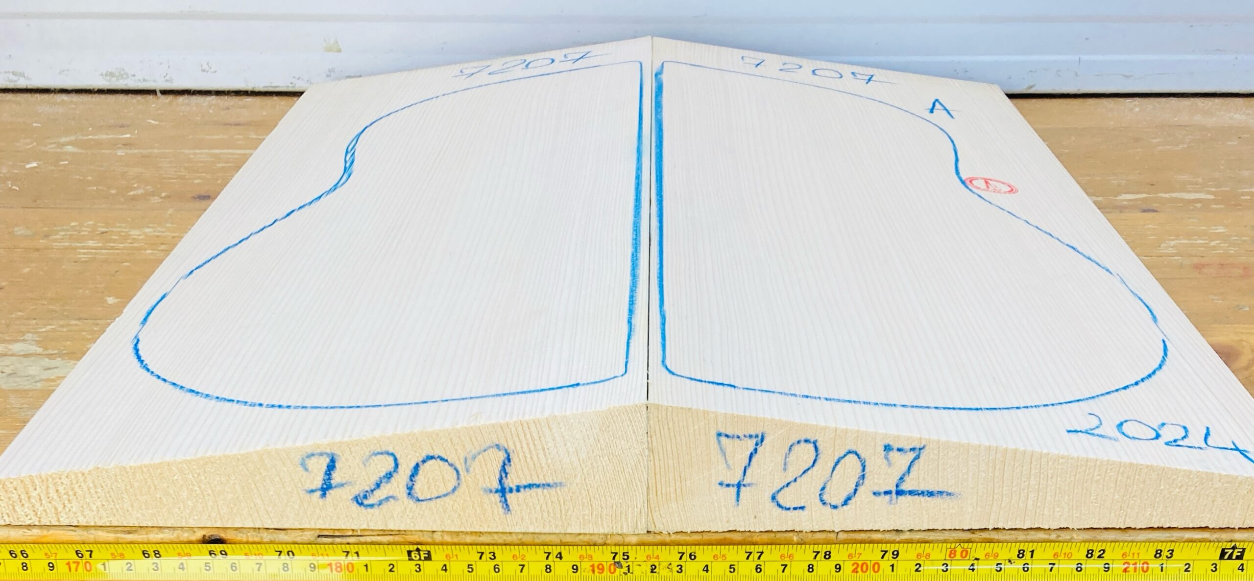 There is a set of two bookmatched, quartersawn halves. Each half is minimum 23″ x 9″ (600 mm x 230 mm) and tapers from approximately 0.43″ to 1.25″ at the joint edge (11 mm to 35 mm) thickness
