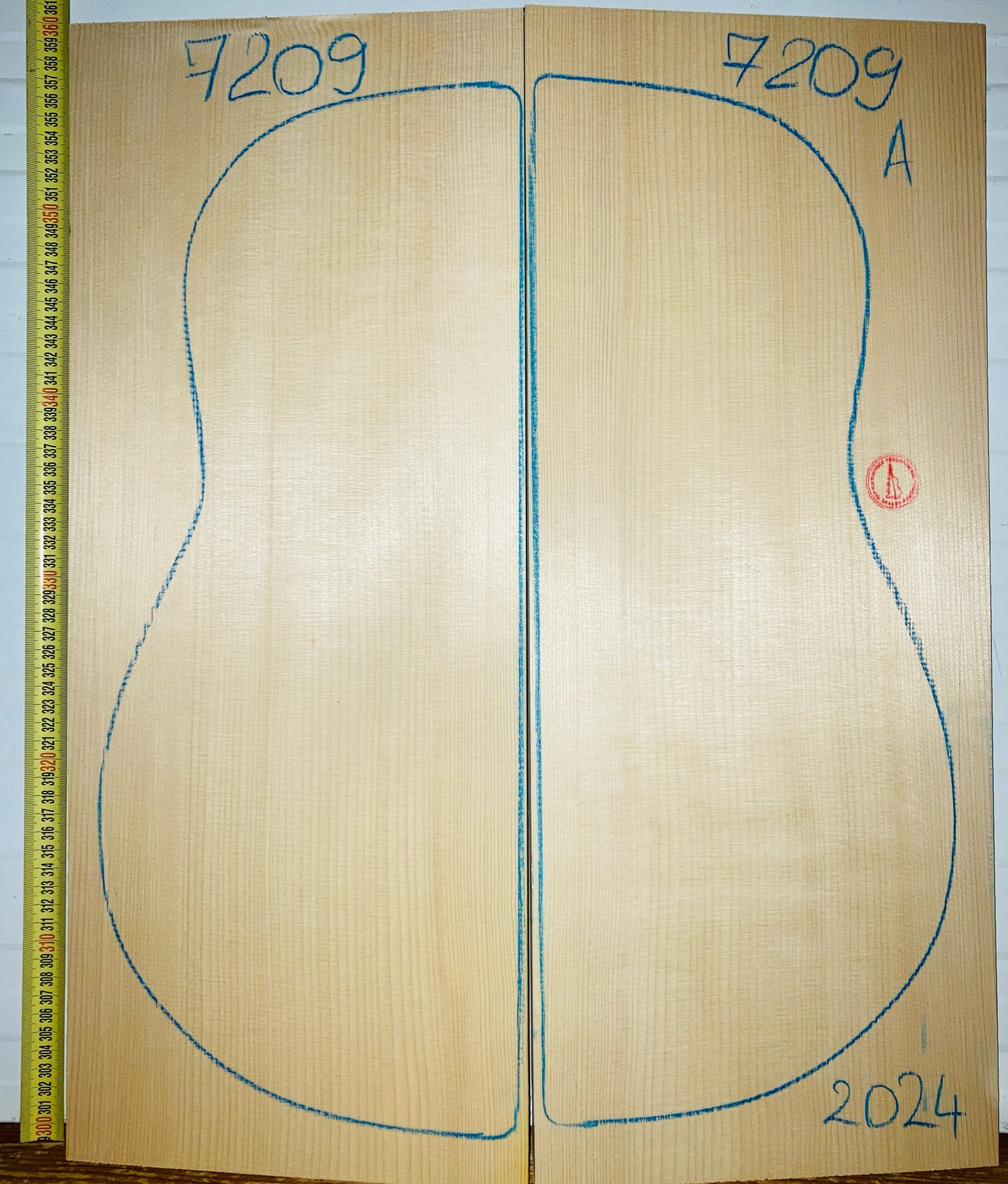 There is a set of two bookmatched, quartersawn halves. Each half is minimum 23″ x 9″ (600 mm x 230 mm) and tapers from approximately 0.43″ to 1.25″ at the joint edge (11 mm to 35 mm) thickness
