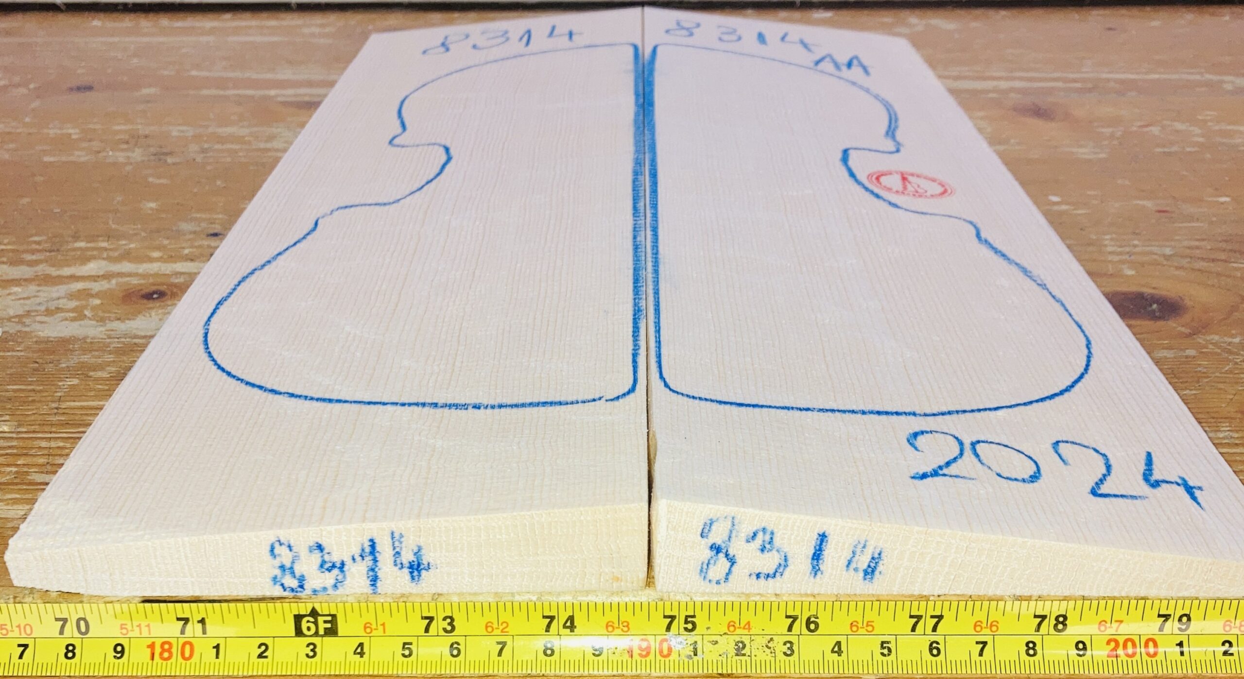 You will get two bookmatches halves, each one minimum 450 mm x 120 mm with thickness tapering from approximately 6 mm to 19 mm at the joint edge.