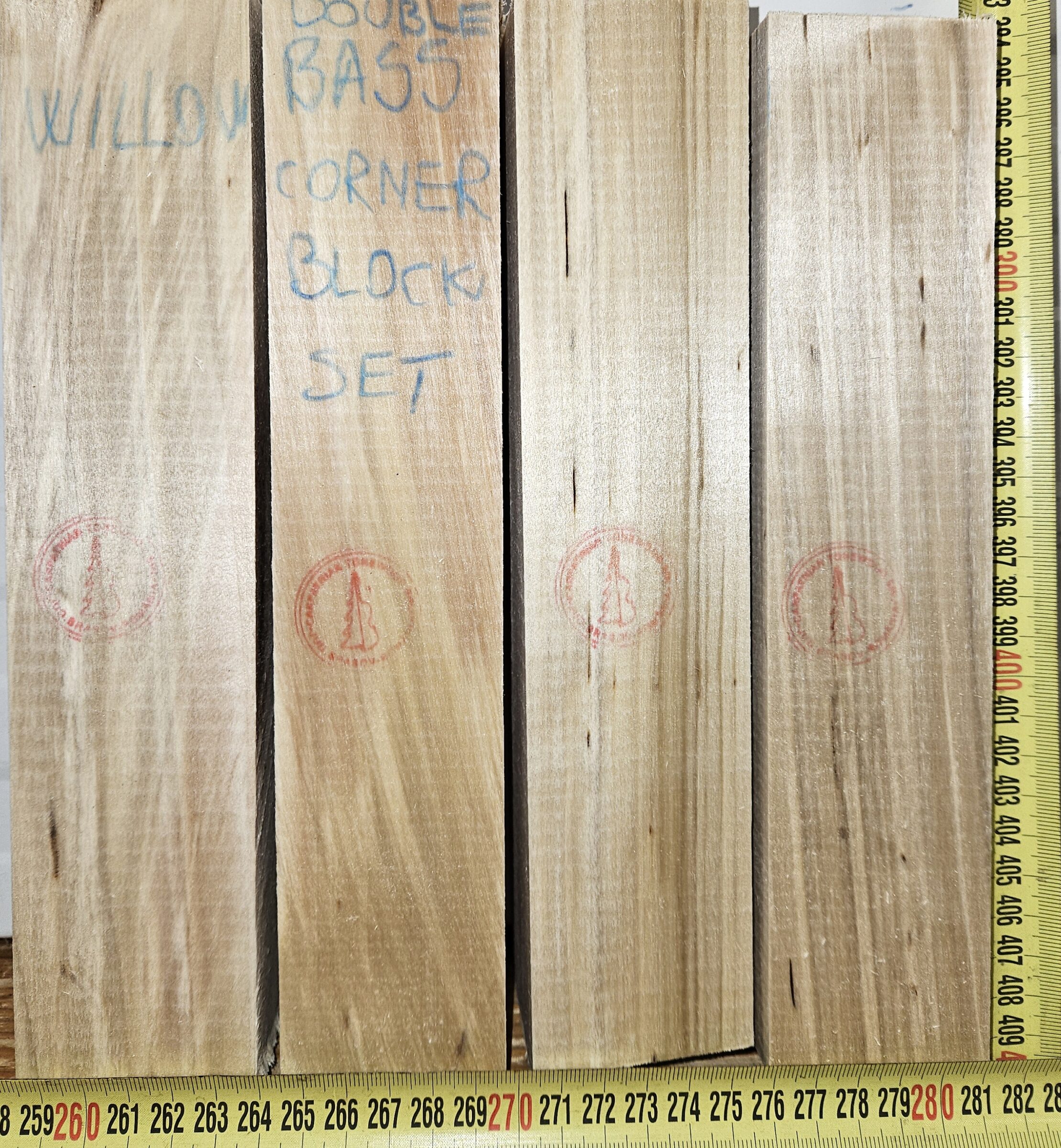 Corner block set for double bass cut from willow