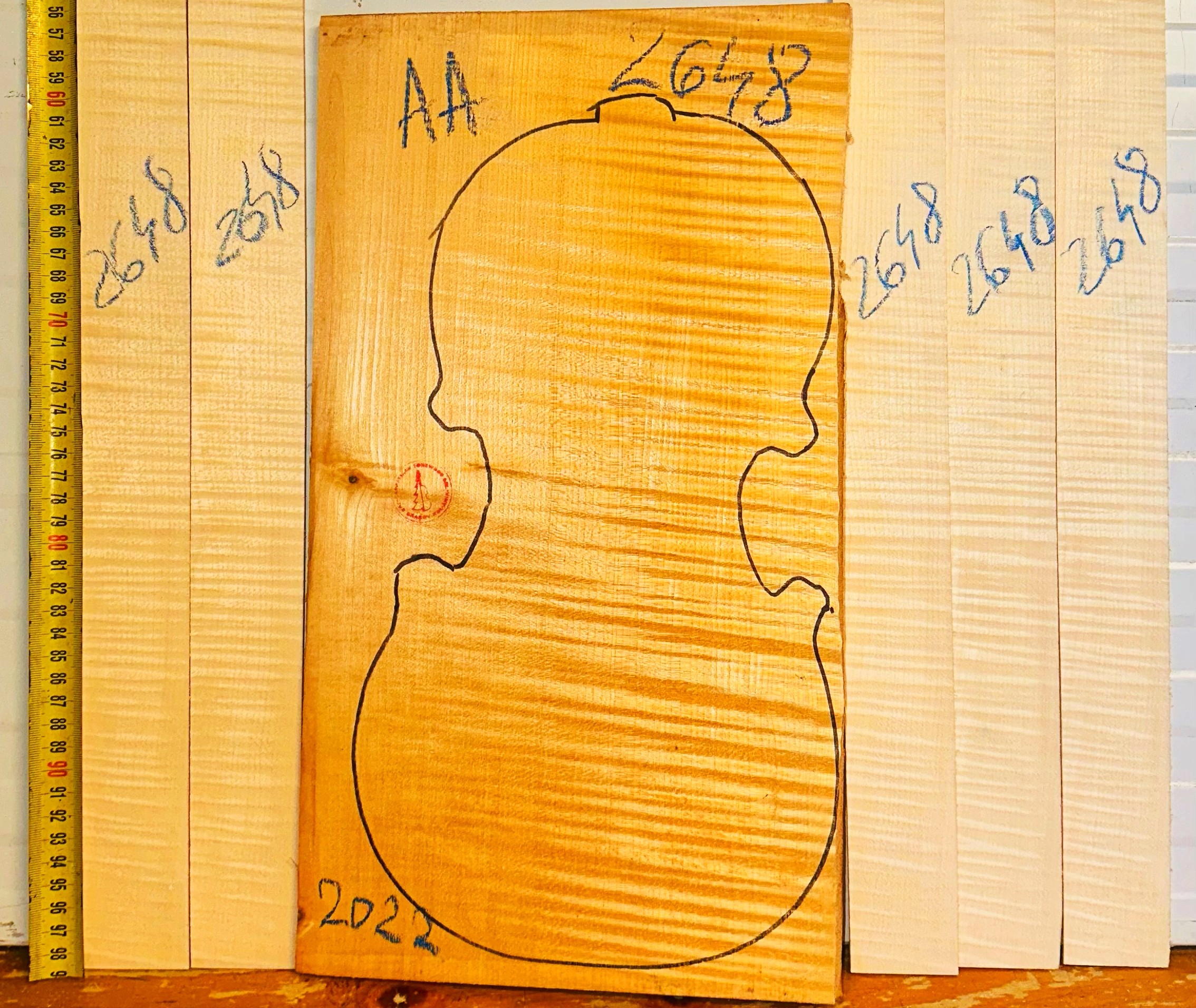Violin Curly Maple One piece Back and Sides No. 2648, AA Grade